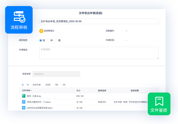 业务系统与本系统对接,所有外发文件需经本系统鉴密且通过流程审批后可外发至客户。