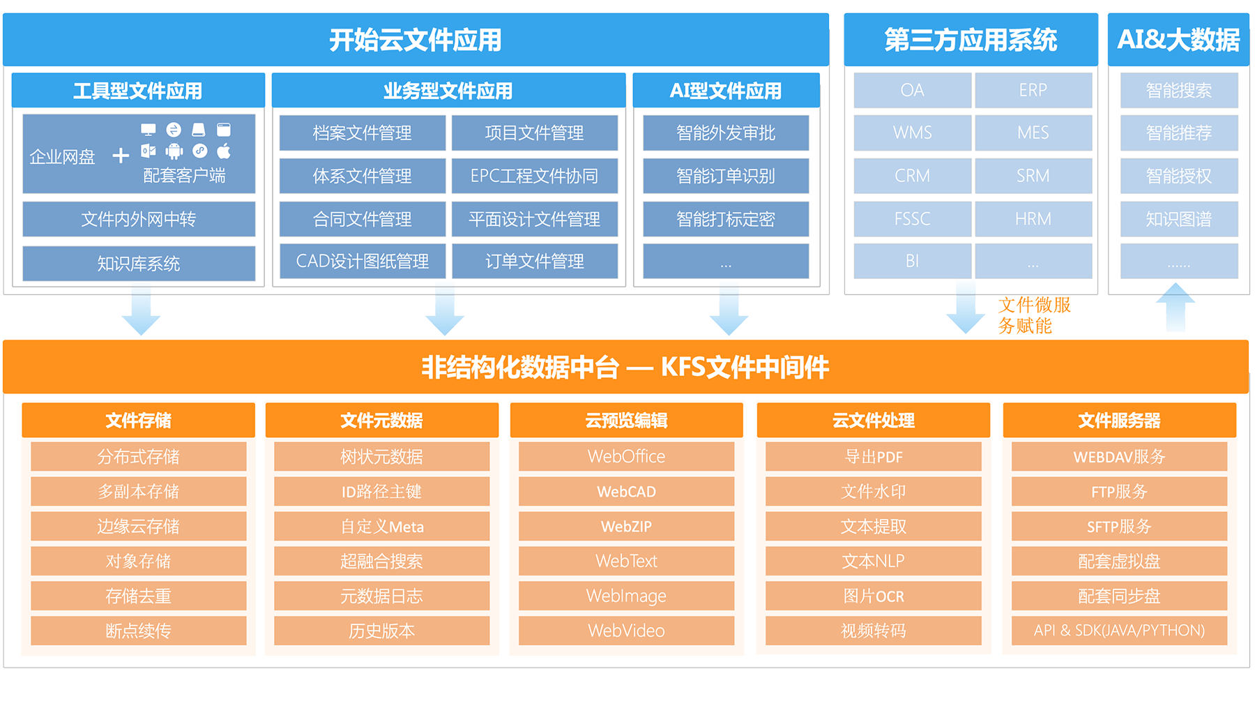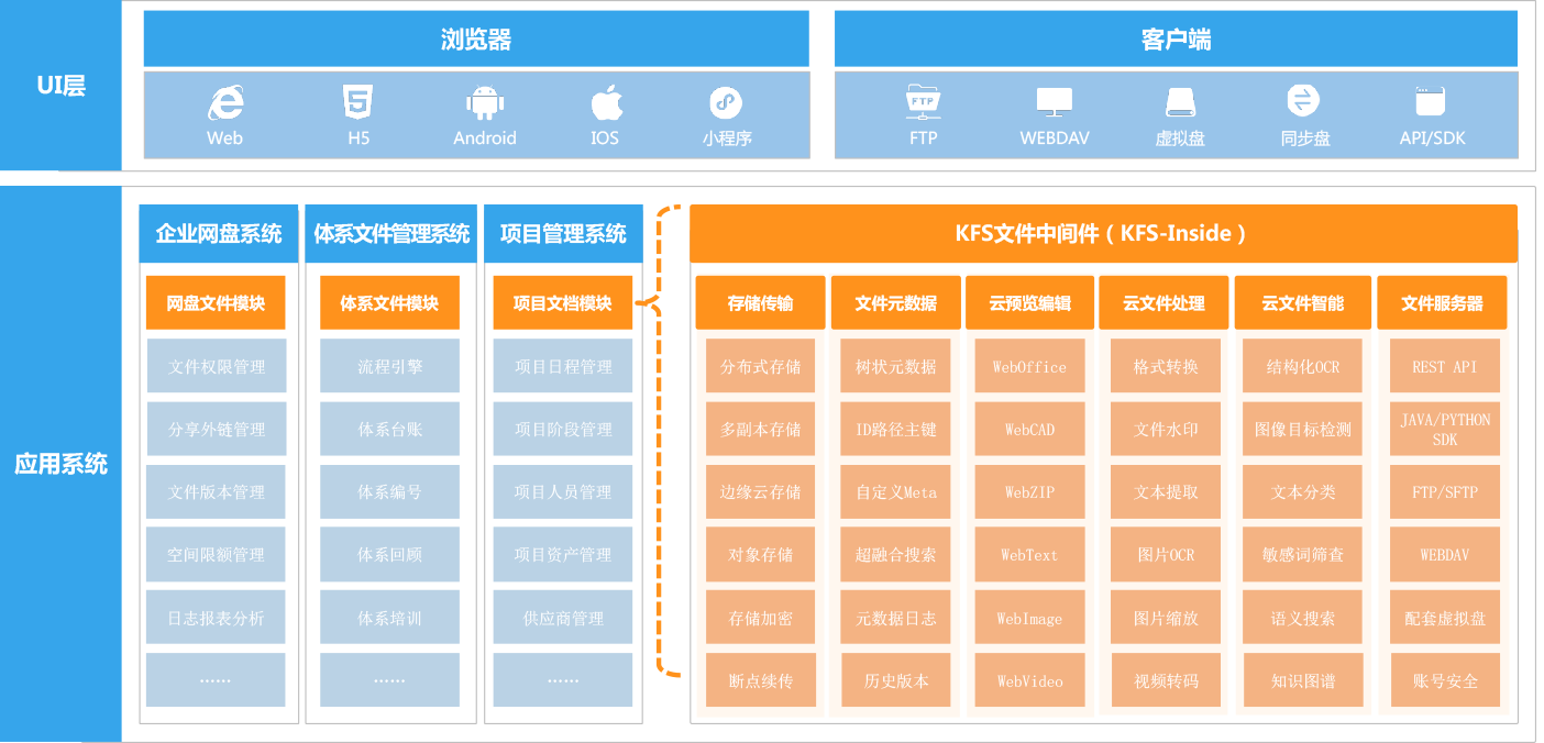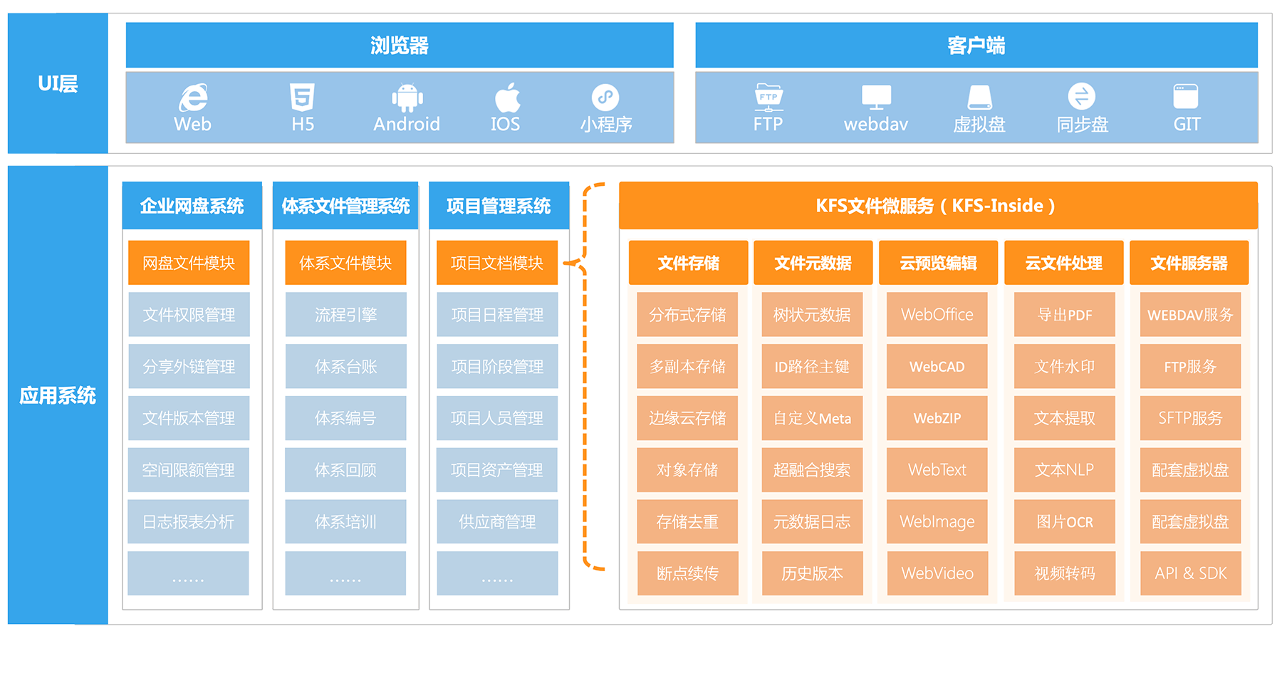 提供PaaS文件中台,采用可靠分布式存储,服务开发者,赋能业务系统之上,一站式解决业务系统中的文件问题