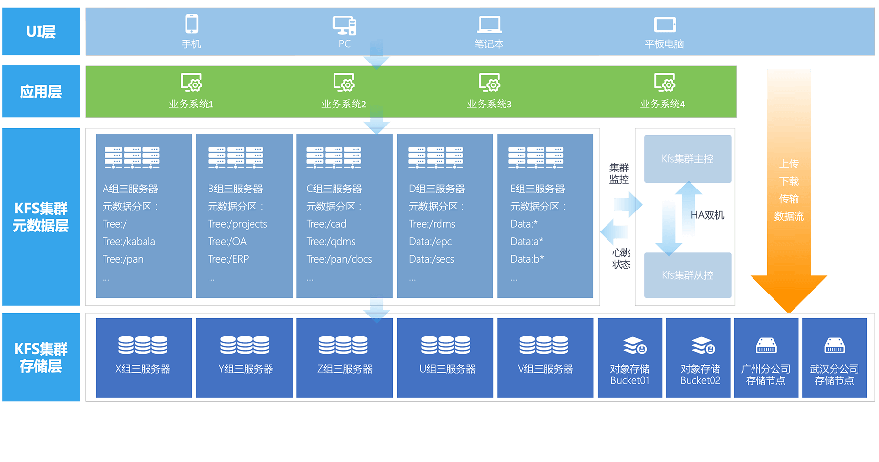 为业务系统或AI系统提供可靠的底层云文件存储,采用树状数据结构