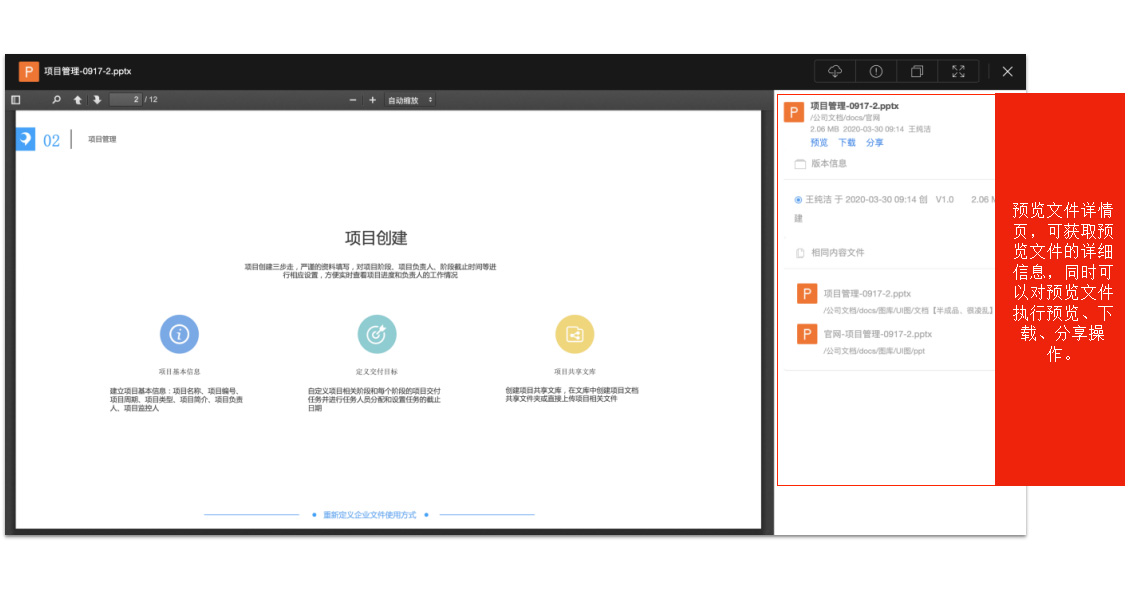 项目背景:目前项目过程文档依旧通过传统的聊天工具或者邮箱来传输,使得项目过程文档无法系统集中保存,安全性更是无法得到保证,使得项目内部人员和外部人员就项目文档的协同办公变得异常复杂和难以管理。