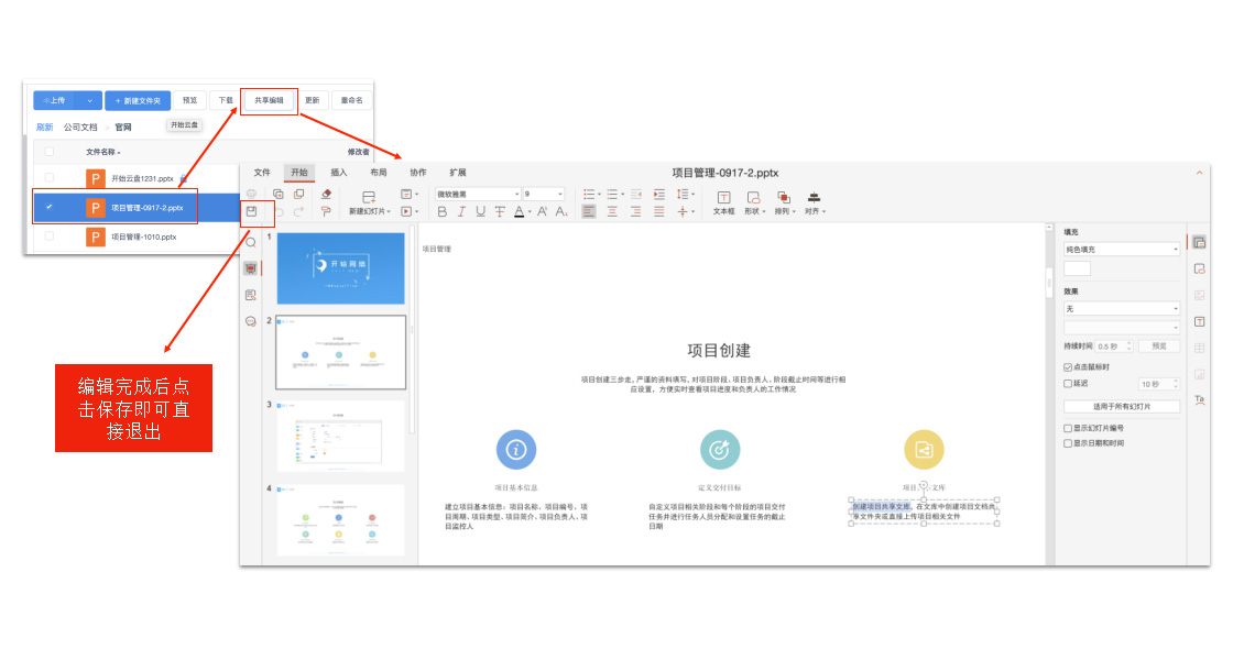 用户选择文件-共享编辑,即可进入在线编辑页面。